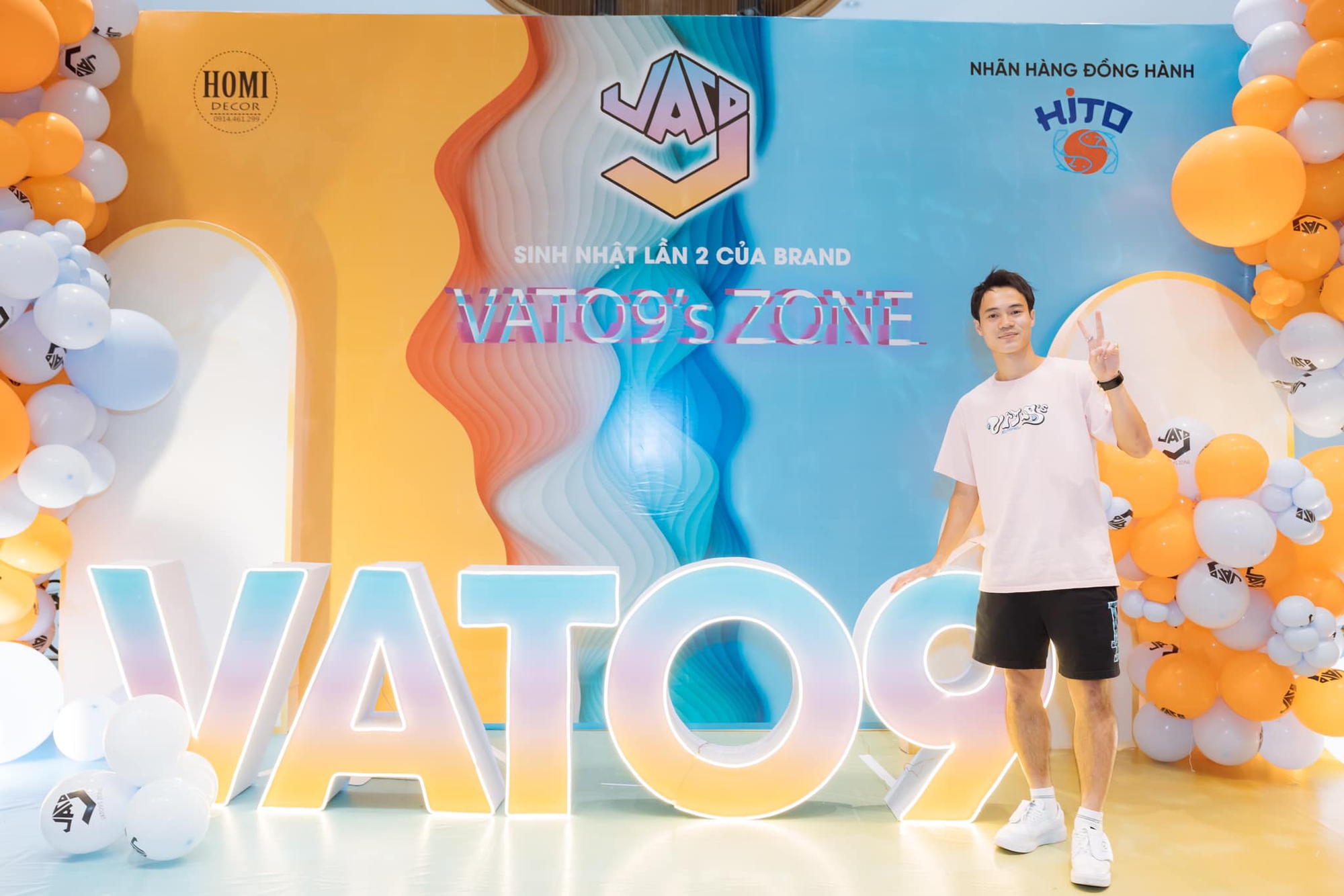 Văn Toàn trong tiệc sinh nhật 2 tuổi hãng thời trang của bản thân. Ảnh: FBNV.