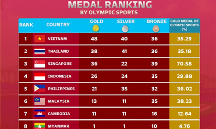 BXH Huy chương SEA Games 32 chỉ tính các môn thể thao Olympic.