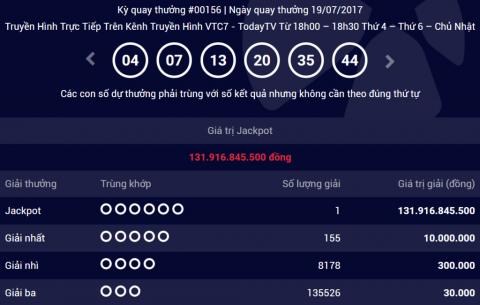 trong kỳ quay 156, mở thưởng tối 19/7.