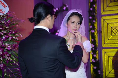 Anh còn tận tình chăm sóc tân nương khi mang nước cho cô uống sau thời gian đứng đón tiếp các vị khách mời.
