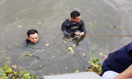 Trưa 27/3, cảnh sát cứu nạn, cứu hộ TP.HCM phải mất hàng giờ ngụp lặn dưới dòng nước đen mới tìm được người đàn ông nhảy kênh Tàu Hủ.