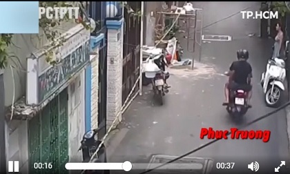 Lợi dụng lúc cô gái đang đứng ở trong ngõ không chú ý, 2 tên cướp đi xe máy lao đến giật túi xách trên tay cô gái rồi tẩu thoát.