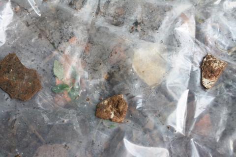 | Một số di vật được lấy lên từ các hố đào thăm dò. Ảnh. Điền Quang. |