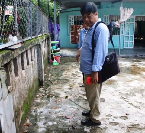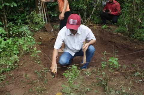 | Đoàn khảo cổ thăm dò một ví trí nằm trong khuôn viên nhà dân. Ảnh. Điền Quang. |