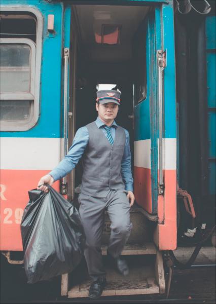 | 1 nhân viên trên tàu SE2 dừng tại thành phố Nha Trang. Ngành đường sắt Việt Nam đang nỗ lực không ngừng để xây dựng hệ thống hiện đại hơn. Trong tương lai không xa, những tuyến đường sắt trên cao, đường sắt cao tốc sẽ được đưa vào hoạt động, hội nhập với khu vực và thế giới. |