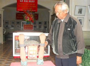 Trong số những kỷ vật thiêng liêng ấy là lá cờ Đảng và tấm chân dung Hồ Chủ tịch được nhuộm bằng máu của các chiến sĩ cách mạng trong nhà tù Phú Quốc. Hình búa liềm ở giữa lá cờ được tạo nên từ những viên thuốc ít ỏi mà các chiến sĩ cách mạng có được đem mài ra, pha thành màu để vẽ. Ở chốn lao tù, một viên thuốc còn quý hơn máu.