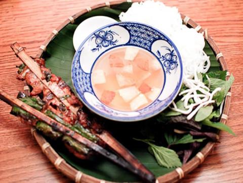 Bún chả kẹp que tre ở Hà Nội rất được lòng thực khách. Ảnh: traveltimes