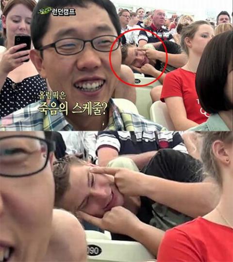 Mùa hè năm ngoái, dàn MC của chương trình Healing Camp nổi tiếng đã có dịp tới London dự Thế vận hội mùa hè và ghi hình tại đây. Khi tập phim lên sóng, khán giả phát hiện ra một chàng trai ngồi ngay sau MC Lee Kyung Kyu đang dùng tay kéo đuôi mắt – hành động được cho là chế giễu người châu Á. Mặc dù chàng trai kia không hướng về ống kính camera của Healing Camp nhưng khán giả không khỏi cảm thấy khó chịu.
