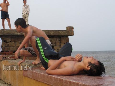 Một số người dân ở đây cho biết năm nào cũng có người bị thương phải mang đi viện cấp cứu do nhảy từ trên lô cốt xuống va vào đá ngầm.