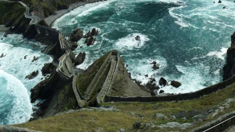 San Juan de Gaztelugatxe (Bermeo, Tây Ban Nha): Bắc từ đảo Gaztelugatxe (Lâu đài Đá) tới vùng đất liền Tây Ban Nha, cây cầu hùng tráng trên Vịnh Biscay từngđược chọn làm bối cảnh quay đảo Đá Rồng trongphần 7 củaloạt phim Trò chơi Vương quyền (Game of Thrones).