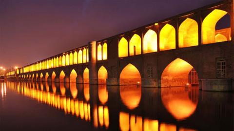 Cầu Allahverdi Khan (Isfahan, Iran):Còn được gọi là Si-o-seh-pol, cây cầu 300m này là cầu dài nhất trên sông Zayanderud. Được xây dựng vào năm 1599 với hai bộ 33 mái vòm chồng lên nhau, đối xứng lặp đi lặp lại và phản chiếu tới bất tận trên mặt nước, đây là thiết kế cầu từ triều đại Safavid của Iran nổi tiếng nhất thế giới.