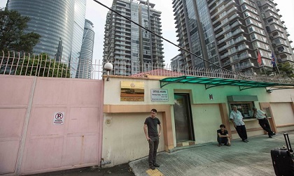 | Quang cảnh bên ngoài Đại sứ quán Việt Nam tại Kuala Lumpur sáng 10/4. Đại diện sứ quán cho biết sẽ hỗ trợ tối đa đối với Đoàn Thị Hương. Ảnh:Thanh Tuấn - Đông Phong. |