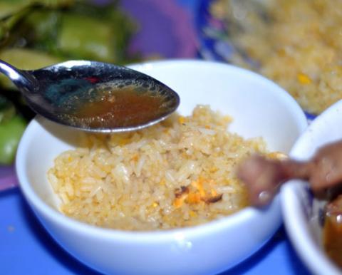 Cơm đảo vàng rộm màu của trứng, hạt gạo tơi và săn