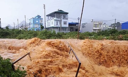 | Mưa lớn khiến TP Lai Châu chìm trong biển nước, nước tuôn xối xả |