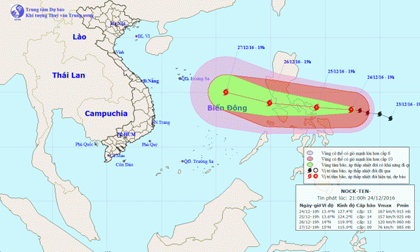 Hồi 19h ngày 24/12, vị trí tâm bão Nock-ten ở vào khoảng 13,4 độ Vĩ Bắc; 127,4 độ Kinh Đông, cách bờ biển miền Trung Phillippin khoảng 300km về phía Đông. Sức gió mạnh nhất ở vùng gần tâm bão mạnh cấp 15 (tức là khoảng từ 165 đến 180km một giờ), giật trên cấp 17.