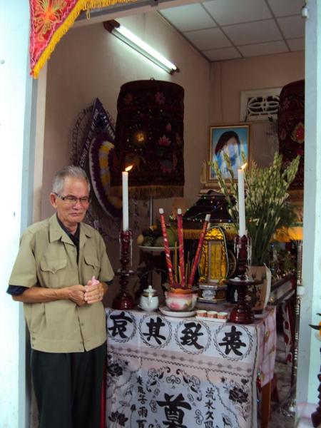 Ông ngoại chị Trâm trước quan tài cháu mình