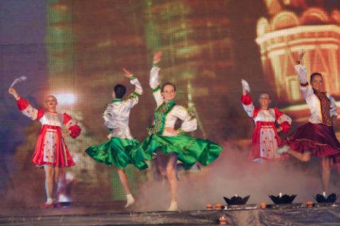 Những điệu múa khoẻ khoắn trong trang phục đậm chất văn hoá của các nghệ sĩ, diễn viên của vũ đoàn Raguda (Nga)