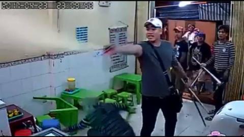Như Báo Người Lao Động đã thông tin, lúc 23 giờ ngày 23-4, tại quán kem Chú Tám, hơn 10 thanh niên xăm trổ, cầm ống sắt chạy vào quán để đập phá bàn ghế.