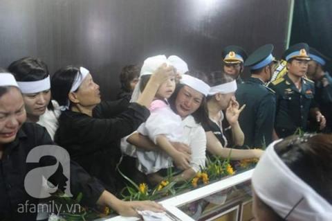 Gia đình phi công Khải đau xót khi nhìn linh cữu lần cuối cùng.