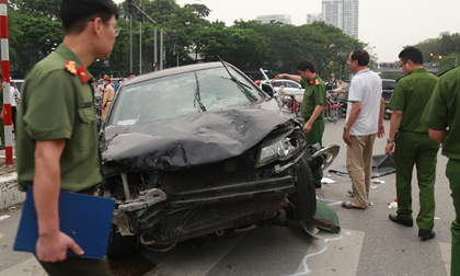 Tài xế ô tô là ông Hoàng Hồ V. (SN 1960, trú tại phường Nguyễn Sơn, Bồ Đề, Q.Long Biên, Hà Nội). Ông V. chở vợ vừa khám bệnh ở Bệnh viện Tim Hà Nội đi ra thì gây ra vụ tai nạn.
