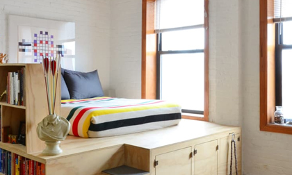 Có thể đóng một chiếc giường hộp với bậc cầu thang rộng để tận dụng tối đa mọi không gian.