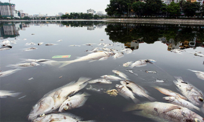 Cá chết cùng với rác thải nổi trên mặt hồ gây ra mùi hôi thối khó chịu.