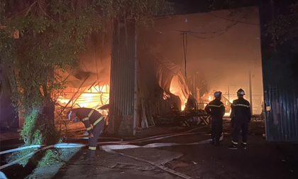 Khu vực xưởng sản xuất xảy ra vụ cháy có diện tích khoảng hơn 300m2, kết cấu khung thép, mái tôn, bên trong có nhiều chất dễ gây cháy nên lực lượng Cảnh sát PCCC&CNCH đã khai thác nguồn nước tự nhiên tại ao để tổ chức triển khai chữa cháy.