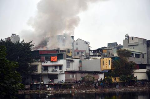 Hiện trường vụ hoả hoạn tại phố Lạc Nghiệp (Hai Bà Trưng, Hà Nội)