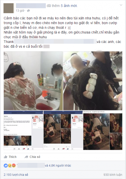 Được biết, vụ cướp giật táo tợn trên xảy ra vào khoảng 20h30 tối ngày 29/6, trên đường Giải Phóng, phường Giáp Bát, quận Hoàng Mai, Hà Nội khiến chị N. bất tỉnh tại chỗ và phải đi cấp cứu với nhiều vết thương trên đầu chứ không phải tử vong như thông tin một số tài khoản chia sẻ trên mạng xã hội trước đó.