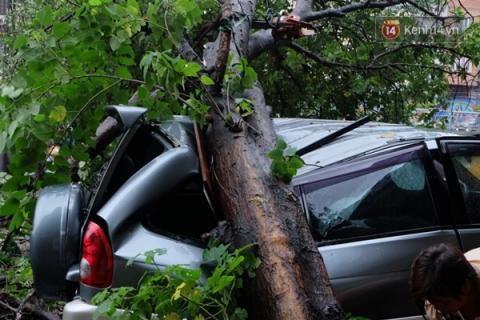 Đường Trần Quang Khải, mưa to khiến một cây xanh bị đổ đè bẹp chiếc ô tô 7 chỗ.