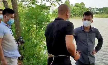 Khi đến đường bao quanh bờ ao, đoạn giáp với sân nhà anh Độ, Tấn phát hiện có ánh sáng phản quang của phao câu dưới ao cá nhà mình.