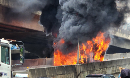 Xe buýt bắt đầu lên dốc lối dẫn Vành đai 3 trên cao (Hà Nội) thì bốc cháy ngùn ngụt, hiện chưa có thông tin về số người thương vong cũng như nguyên nhân vụ việc.