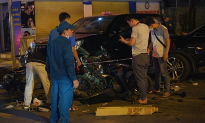 Chiếc ô tô Hyundai Santafe tiếp tục chạy khoảng 300m và đâm vào nhiều xe máy, ô tô khác