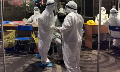 Trung tâm Y tế Quận Đống Đa trong đêm khuya 4/2 khẩn trương lấy mẫu xét nghiệm sàng lọc SARS-CoV-2 cho hơn 1000 cư dân tại chung cư nơi nhân viên ngân hàng mắc Covid-19 sinh sống.