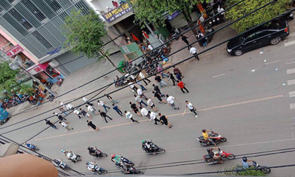 Hai nhóm cầm hung khí đuổi chém trên đường. Ảnh: M.T