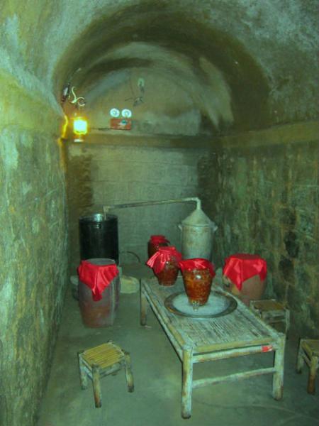 Hầm rượu có tổng chiều dài từ lối vào đến lối ra khoảng 80 mét (nay được xây dựng thêm khoảng 20 mét), chiều cao 2,5 mét, rộng khoảng 2 mét, bên trong có các hầm cất giữ rượu, hầm chưng cất rượu, bar rượu, lò sưởi, sảnh. Vách hầm được xây bằng đá núi và vữa làm từ hỗn hợp đường và nhựa cây bời lời – một loại cây khá phổ biến ở vùng Quảng Nam – Đà Nẵng.