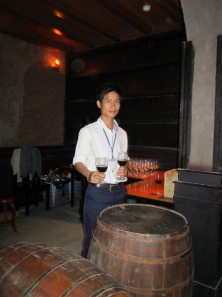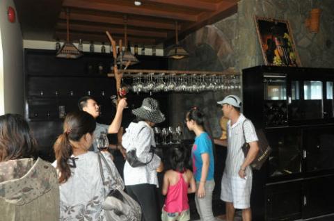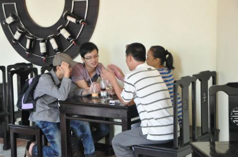 Du khách cầm ly rượu vang lên tầng lầu ở quầy bar Debay ngồi nhâm nhi rượu vang khi ngồi nghỉ ngơi trò chuyện