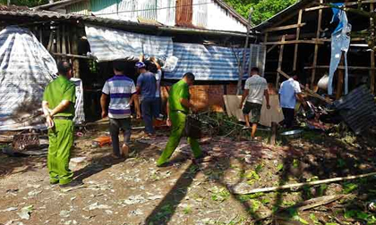 Tại hiện trường, vụ nổ làm mặt đất biến dạng tạo thành hố có đường kính rộng hơn 1m, sâu khoảng 50cm, nhiều cây cối xung quanh bị đổ ngã, căn nhà bên cạnh bị bị hư hỏng nhiều vật dụng.
