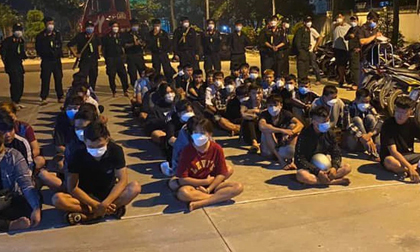 Thấy công an, nhóm quái xế tăng ga tháo chạy tán loạn, cảnh sát đã bố trí vây bắt được 43 đối tượng thanh thiếu niên từ 14 - 23 tuổi cùng 46 xe máy các loại.