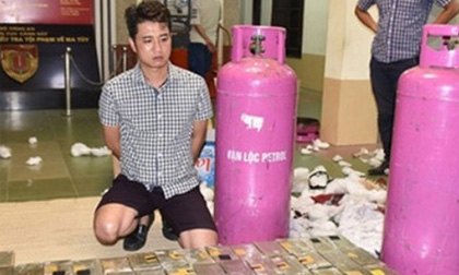 Nguyễn Quốc Hùng cùng số ma túy được lôi ra trong ruột bình gas