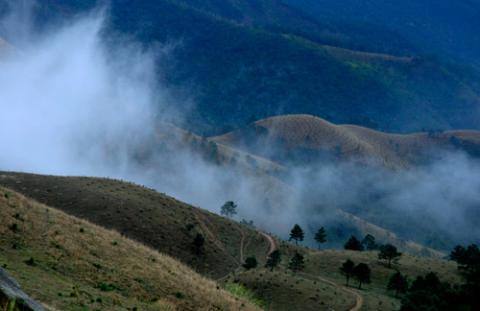 Mây tỏa như khói, khiến khung cảnh càng thêm hùng vĩ.