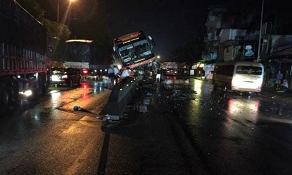 Theo đó, vào khoảng 3h sáng ngày 24.3, tại km 332+500 tuyến QL1A (đoạn qua địa phận huyện Quảng Xương, Thanh Hóa) chiếc xe khách mang BKS 76B-009.88 do Đào Đức Tiến (31 tuổi, trú tại TP. Quảng Ngãi, tỉnh Quảng Ngãi) điều khiển theo hướng Nam - Bắc bất ngờ tông vào dải phân cách và leo lên nằm chông chênh giữa đường.