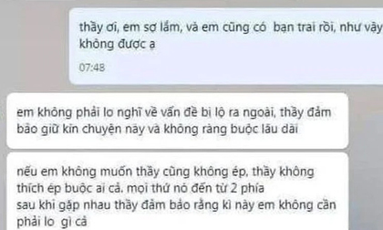Khi nữ sinh này tỏ ý "từ chối" vì đã có bạn trai thì người đàn ông đảm bảo rằng: “Em không phải lo nghĩ về vấn đề bị lộ ra ngoài. Thầy đảm bảo giữ kín chuyện này và không ràng buộc lâu dài”. "Sau khi gặp nhau, thầy đảm bảo rằng kỳ này em không phải lo gì cả”.