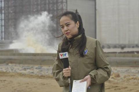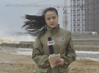 Hoàng Ngọc Bích - biên tập viên thời tiết của Đài VTV đang tác nghiệp tại Vũng Áng - Hà Tĩnh |