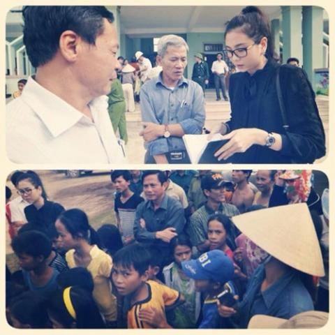 Cách đó 1 ngày, cô cũng tác nghiệp tại Đông Hà - Quảng Trị - một trong những tỉnh miền Trung bão Haiyan có nguy cơ đổ bộ.