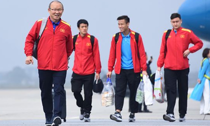 Thầy trò HLV Park Hang Seo vui vẻ trong ngày trở về Việt Nam