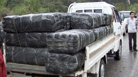 Xe chở 1 tấn cần sa ép khô bị bắt giữ (Ảnh trích từ clip của Nguyễn Cường)