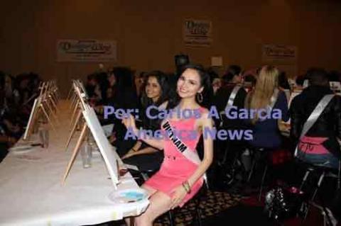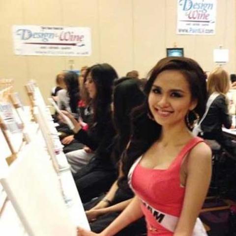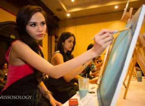 Bước sang ngày thứ 8, Diễm Hương cùng các thí sinh Miss Universe có một buổi vẽ tranh cho buổi đấu giá gẫy quỹ từ thiện cho trẻ em nghèo.