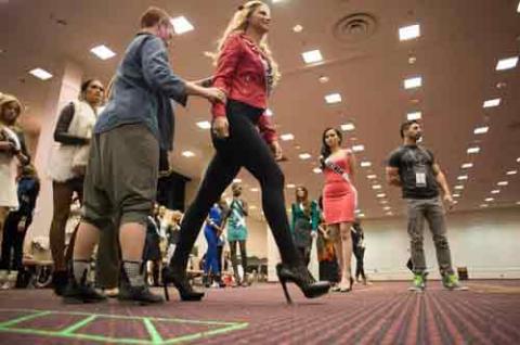 Thời tiết Las Vegas khá lạnh, người đẹp phải diện áo lông chống rét.
