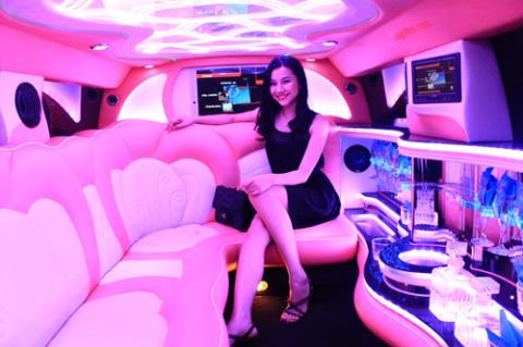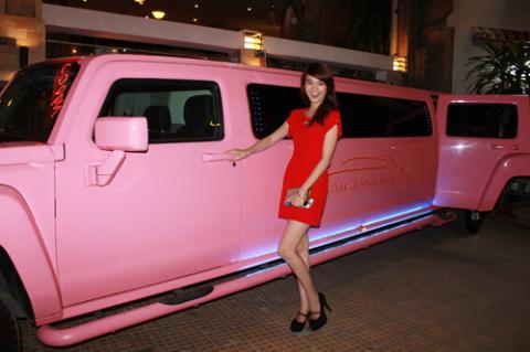 Lan Ngọc mê mẩn với xe Limousine hồng.
